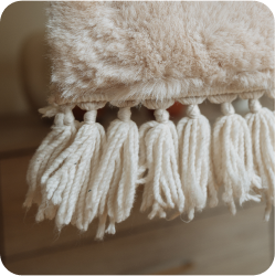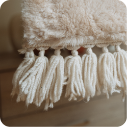 Faux fur not real fur. Helps to create peaceful environment